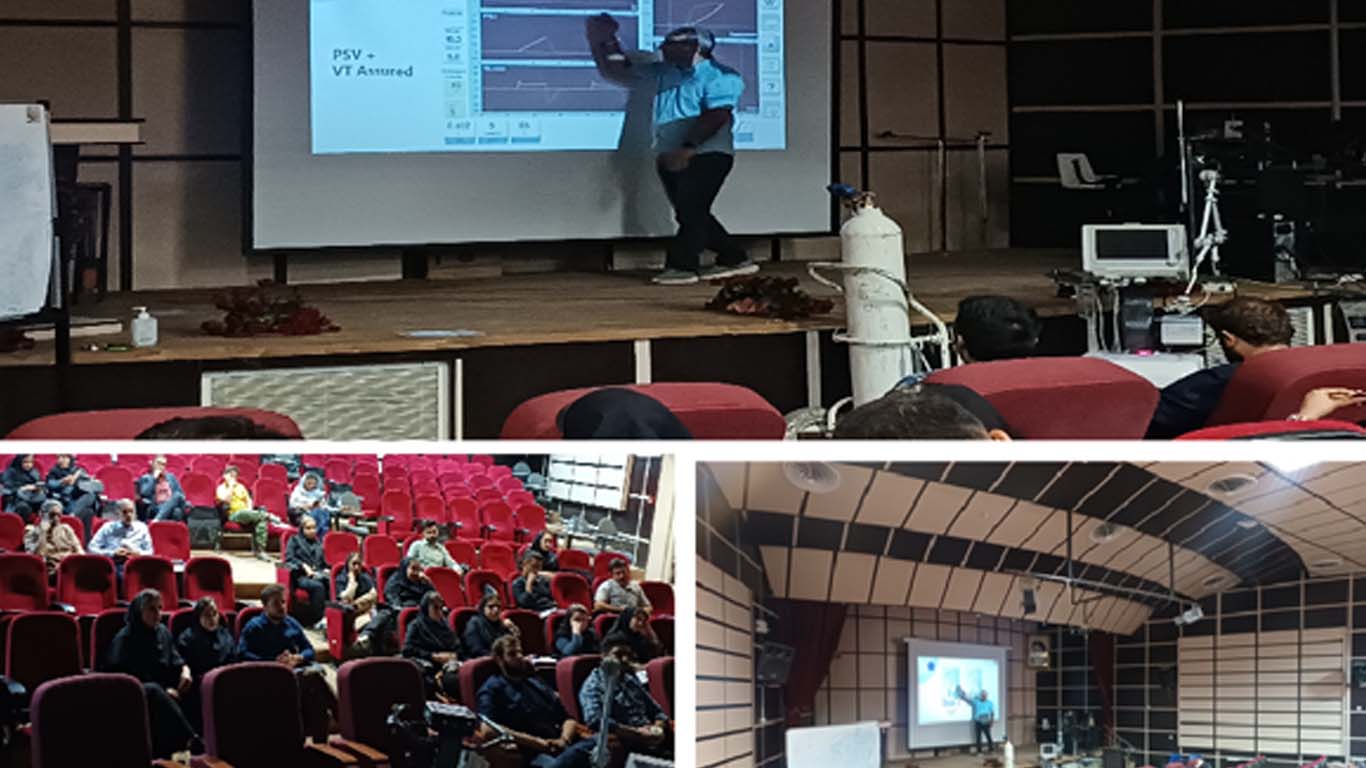 در راستای ارتقای دانش فنی و بهروزرسانی مهارتهای مهندسی پزشکی، اداره تجهیزات پزشکی معاونت درمان دانشگاه علوم پزشکی کردستان با هماهنگی سرکار خانم مژگان اکبری مسئول محترم آموزش معاونت درمان و جناب آقای مهندس صمدی مسئول بخش آموزش اداره ی تجهیزات پزشکی، کارگاه آموزشی تخصصی "کاربری و نگهداشت دستگاههای ونتیلاتور" را در محل سالن آمفی تئاتر مرکز آموزشی و درمانی بعثت برگزار کرد.