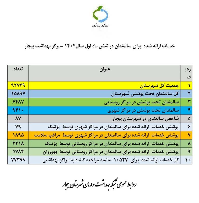 خدمات مراقبتی رایگان مرکز بهداشت بیجار به سالمندان